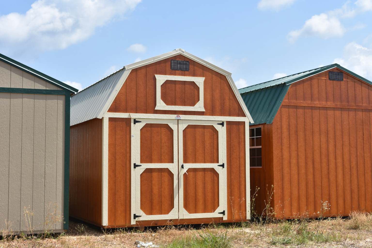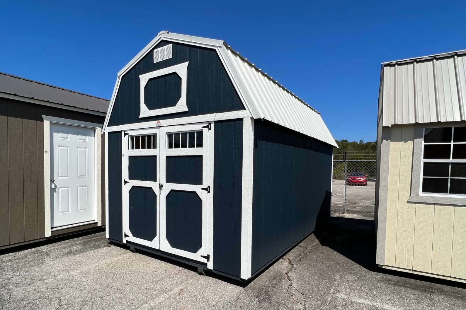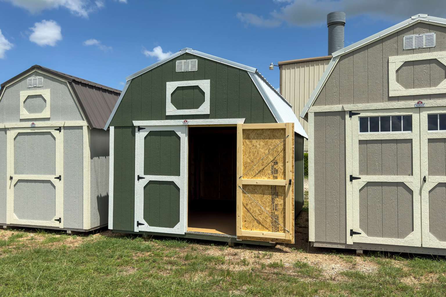 - 10′ and wider buildings feature a double 72″ wide shop door for larger access.