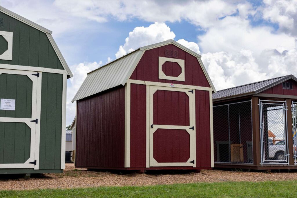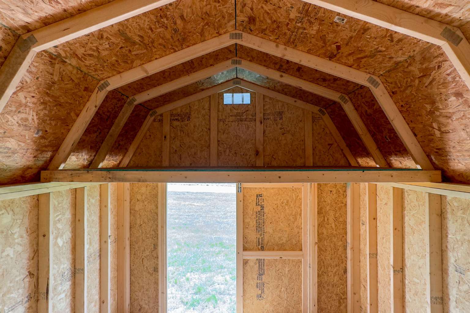 Lofted Barns come standard with 6’6″ wall height (75″ studs). An optional wall-height upgrade is available if you want additional vertical wall space.