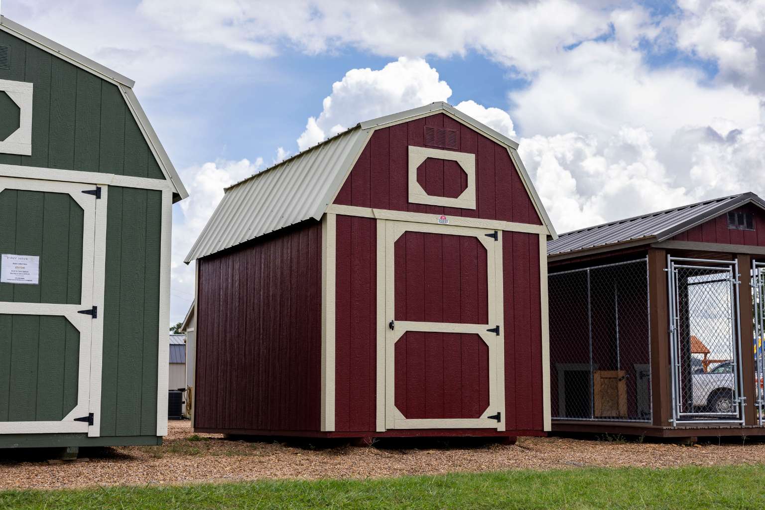 - 8′ wide buildings include a 48″ wide shop door.